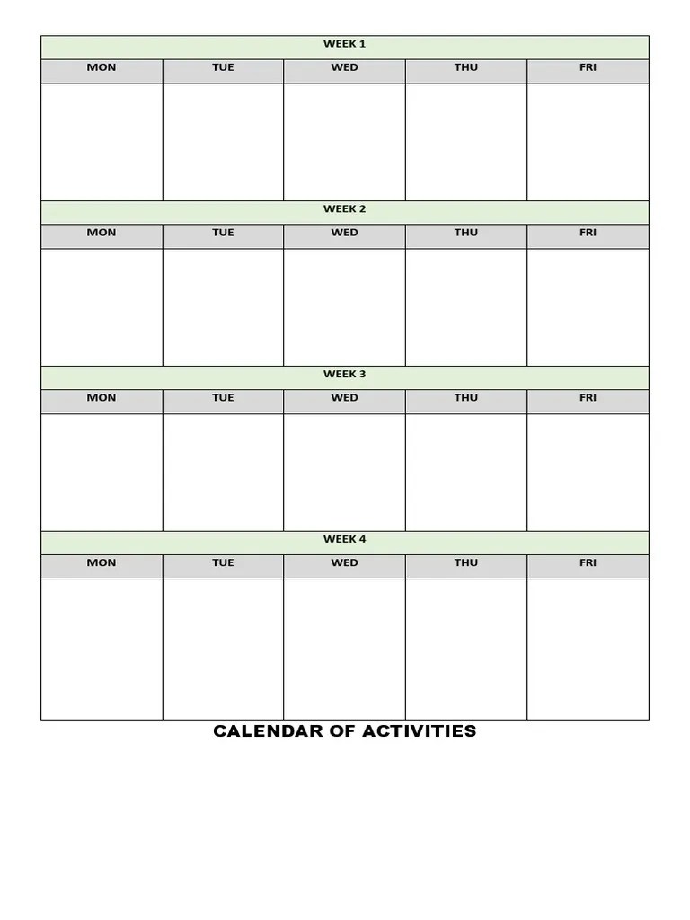 Getting complimentary Activity calendar template can be straightforward and available, you might utilize the internet browser and check out online platforms that excel in providing complimentary items. Be careful about the online platforms you visit, pick well-known sites that offer high-quality, precise files.